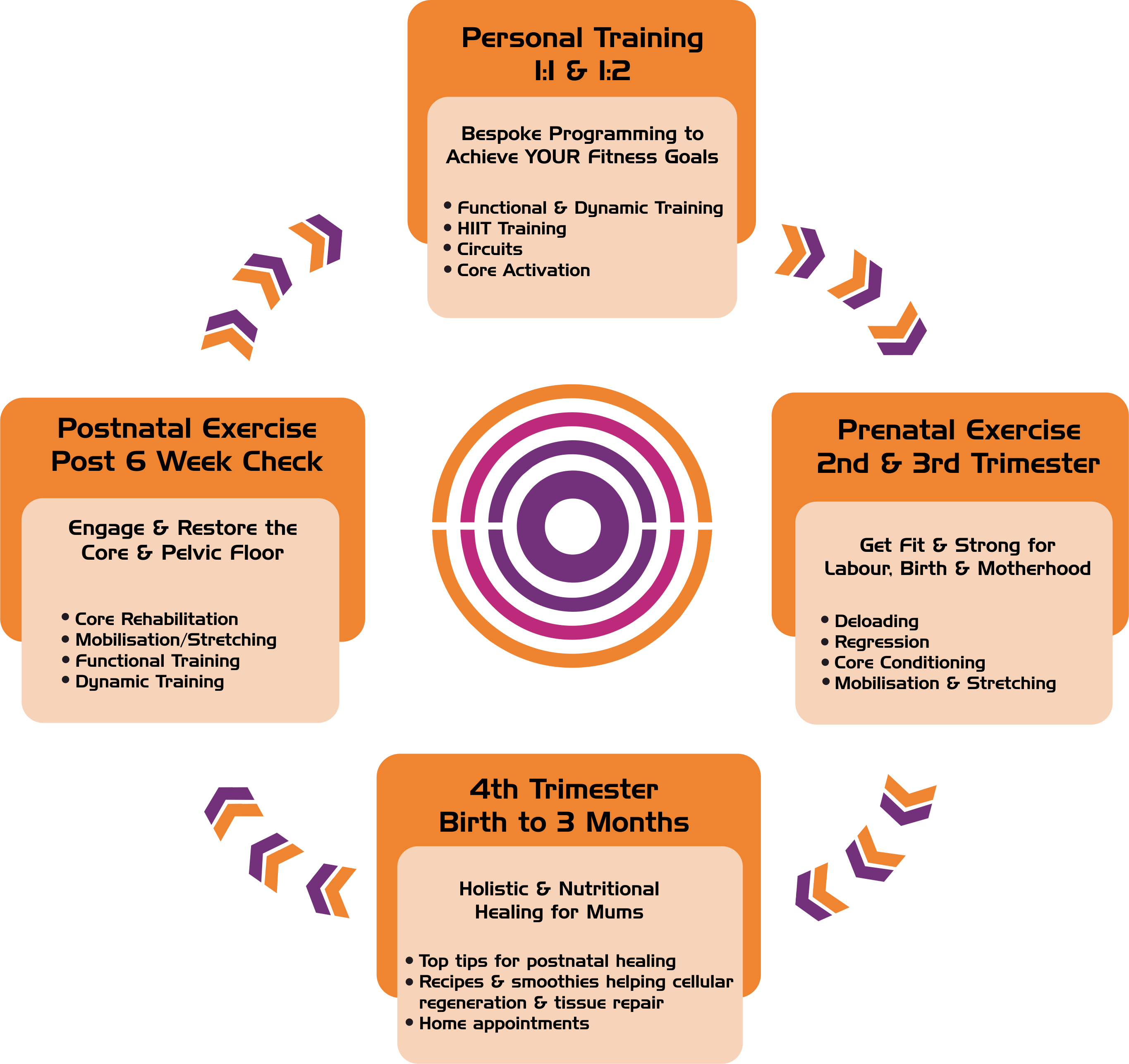 Clawing back your fitness can seem like a mountain to climb, especially post-birth, but exercise really will give you that physical and mental boost, that spring in your step and aid that all important postnatal recovery. With all my knowledge and experience I’m here to provide the support, motivation and (let’s not forget!) the exercises to get you fit and strong through functional training whatever your fitness level or goals.